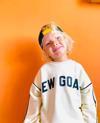 Modern tasarımı ve rahat kalıbıyla öne çıkan bu krem renkli çocuk eşofman takımı, ön yüzünde ve paçasında yer alan "New Goals" baskısıyla sportif bir görünüm sunuyor. Hem günlük kullanım hem de oyun saatleri için ideal bir tercihtir.