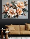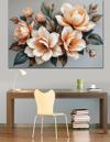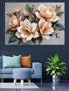 Krem Renkli Zarif Çiçekler Dekoratif Kanvas - Mdf Ahşap Tablo