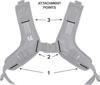 Cepler, halkalar ve kilitleme klipsleri ile emniyet kemerinin her iki tarafına