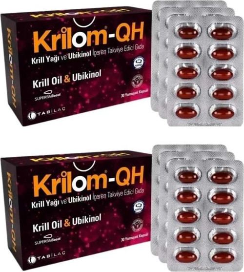 Krilom QH; içeriğinde krill yağı, omega 3, astaksantin, fosfolipid, kolin ve ubikinol içeren takviye edici gıdadır.