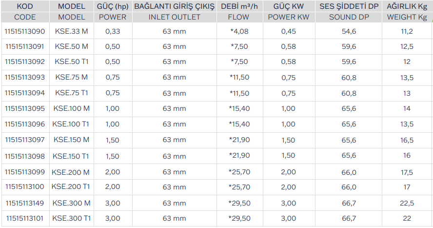 • Motor sürüş özellikleri Class F, IP55, 50 Hz