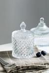 Kristal desenli cam yapısıyla sofralara zarafet katan bu şekerlik, hem günlük kullanım hem de misafir ağırlamalarında şık bir sunum sağlar. Geniş hacmi sayesinde şeker, lokum ve küçük atıştırmalıklar için idealdir.