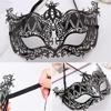 Kristal Gümüş Taşlı Siyah Renk Lazer Kesim Metal Lüks Maske Balo Parti