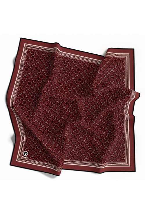 Vissona Kristal Monogram Desenli Bordo Renkli 90x90 Eşarp (İpek İçermez) Kenar Dikiş Şekli El Dikişli