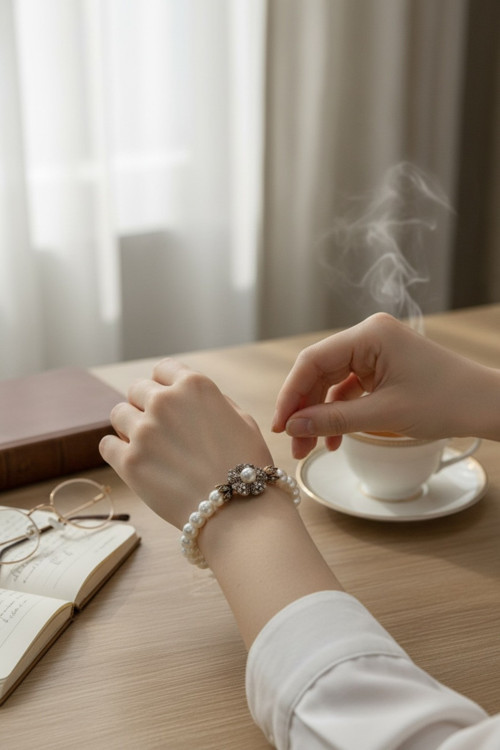 Kristal Taşlı Yonca Figür İnci Bileklik