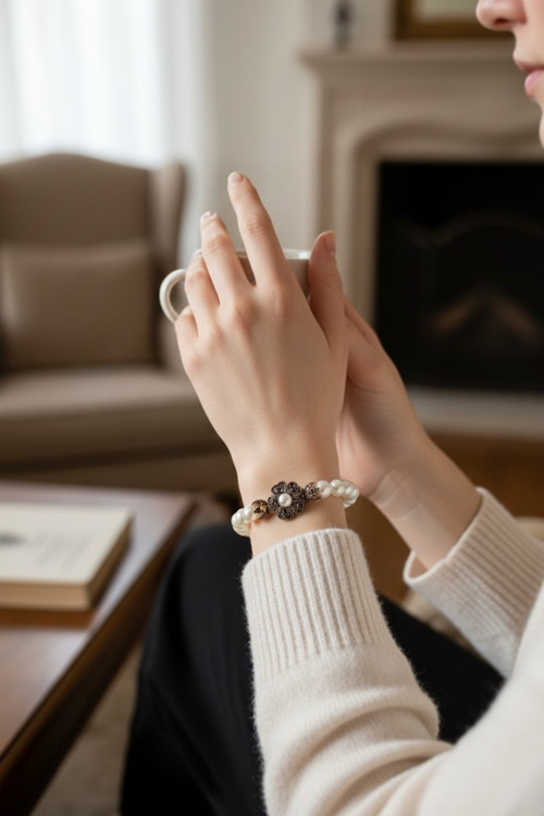 - Göz alıcı yonca figürüyle tasarlanmış, şıklığınızı tamamlayacak inci bileklik.; - Bronz materyali sayesinde dayanıklı ve uzun ömürlü kullanım sunar.; - Zirkon taş detaylarıyla zenginleştirilmiş bu bileklik, her türlü özel gününüzde parıltınızı artırır.; - Bakımı kolaydır; nemli bir bezle silerek temizliğini koruyabilirsiniz.; - Üretiminde yer alan malzemelerle hem kaliteyi hem de estetiği bir arada yaşatır.