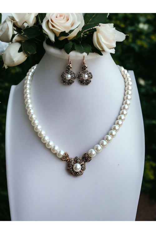 - Zarif tasarımıyla dikkat çeken kristal taşlı yonca figür inci kolye ve inci küpe seti, şıklığınızı tamamlar.; - Zirkon taş kullanımı sayesinde göz alıcı bir parlaklık sunar ve her türlü ışıkta parıldar.; - Bronz materyal bileşeni ile dayanıklılığı artırılmıştır; uzun süreli kullanım için idealdir.; - Türk menşeli bu set, yerel zanaatkarların el emeğiyle üretilmiştir; kaliteyi ve özgünlüğü temsil eder.