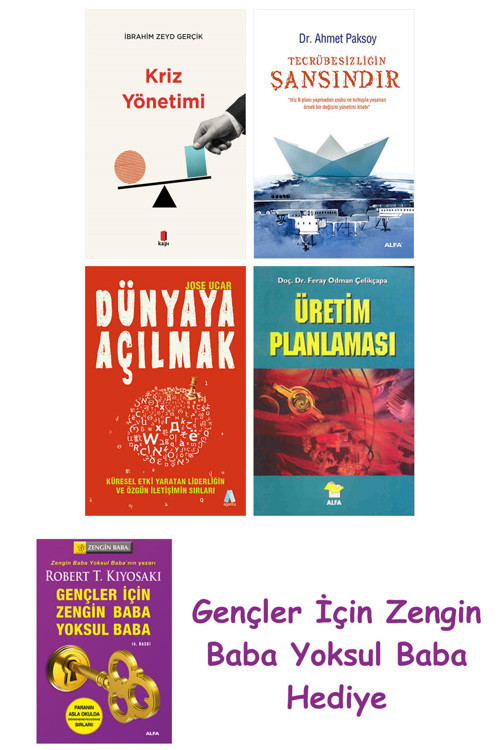 Kriz Yönetimi + Tecrübesizliğin Şansındır + Dünyaya Açılmak + Üretim Planlaması Mağazamızdan tercih edeceğiniz tüm ürünler, görselde ve ürün detaylarında belirtilen özelliklerle birebir aynı şekilde, eksiksiz olarak tarafınıza sevk edilmektedir.