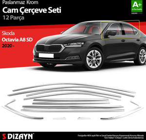 S-Dizayn Skoda Octavia A8 Sedan Krom Cam Çerçevesi 12 Prç. 2020 Üzeri A+ Kalite