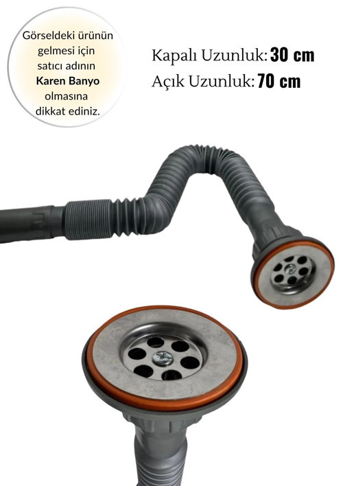 - Karen Banyo Krom Süzgeçli Körüklü Lavabo ve Mutfak Sifonu Lavabo Gider Borusu 1.Kalite Gri