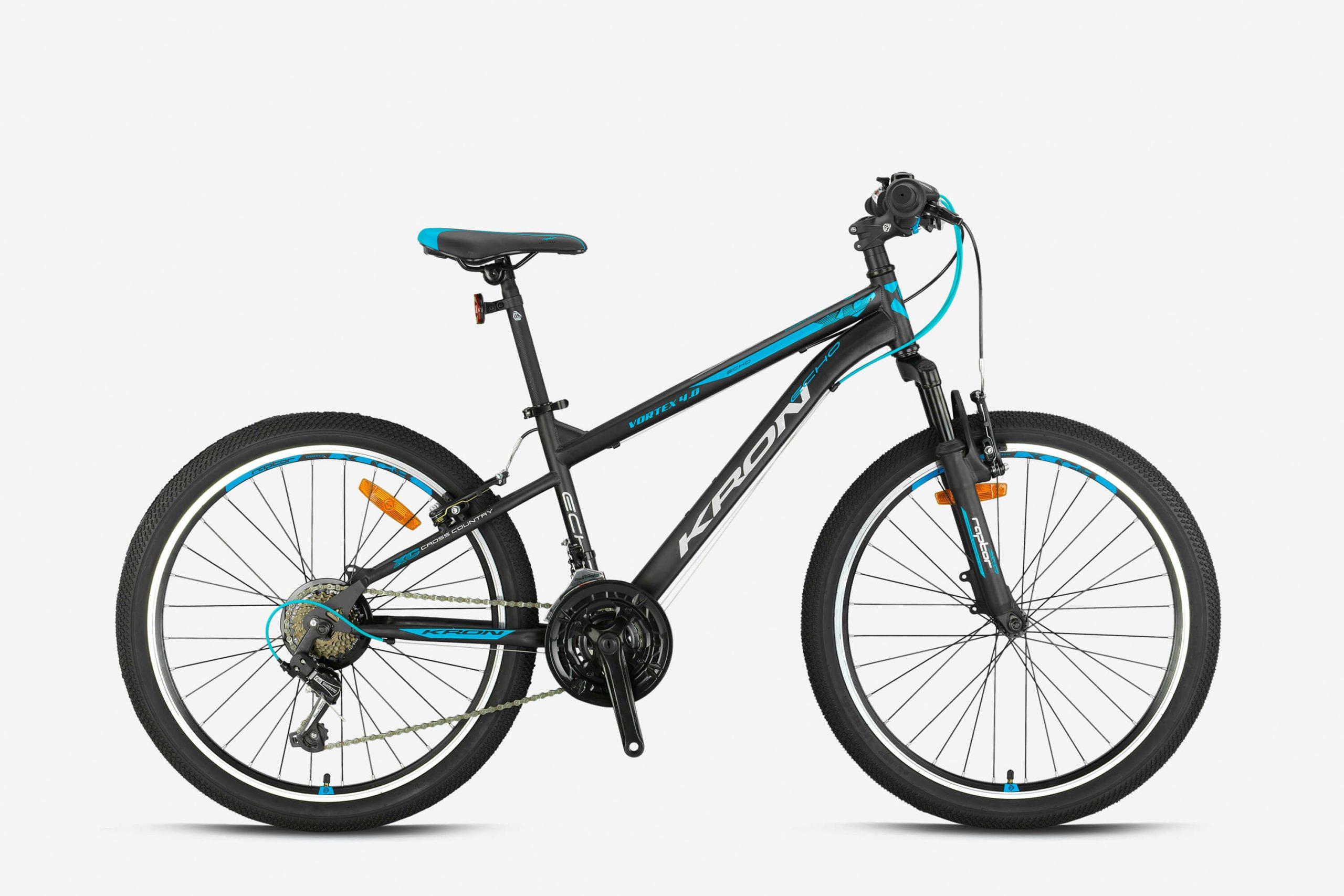 Kron VORTEX 4.0 24 Jant 21 Vites V-Fren Çelik Çocuk Bisikleti Siyah Mavi Kron Vitesli Bisiklet