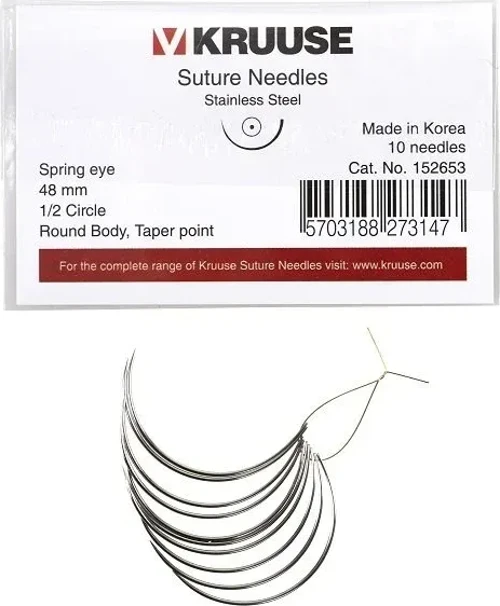 KRUUSE Veteriner Sütür İğnesi 48 mm – Güvenli ve Hassas Cerrahi Dikiş (Spring Eye)