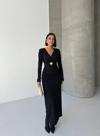 Kruvaze aksesuarları ile zenginleştirilmiş bu maxi elbise, modern kadınların gardırobunda mutlaka bulunması gereken bir parçadır.