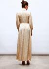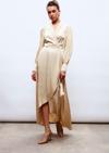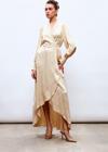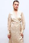 Sateen Kruvaze Desenli Uzun Elbise - Bej