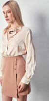 Kruvaze detay, süs düğmeli, arka fermuarlı kapama, mini etek.