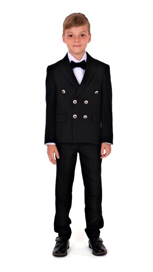 Gömlek, Pantolon, Ceket ve Papyon olarak 4 Parça İtalyan Kruvaze Kesim Erkek Çocuk Takım Elbise.