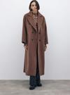 Tasarım Düz Astarlı Yaka Midi Regular Dik Kadın Kuşaklı Düğmeli Yumuşak Dokulu Kaşe Kaban - Image 1
