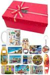 Lüks Fiyonklu bir Hediye Kutusu ile birlikte 8 Adet Ülke Magneti Şişe Kapak Açacak, 1 Adet Anahtarlık Şişe Kapak Açacak ve 1 adet Kupa Bardaktan oluşan toplam 10 adet seyahat hatıra paketi. Dolu dolu Hediyenizi Lüks Hediye Kutusunda Sevdiklerinize sunabilirsiniz.