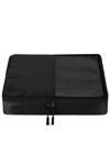 Küçük boy siyah valiz içi organizer çanta, seyahatlerinizde veya günlük kullanımda eşyalarınızı düzenli bir şekilde taşımanızı sağlar. Kompakt ölçüleri sayesinde iç çamaşırı, tişört, gömlek ve aksesuarlar için idealdir. Dayanıklı polyester kumaşı uzun süreli kullanım imkânı sunarken, hafif yapısı ekstra ağırlık oluşturmaz. Fileli ön yüzeyi sayesinde içerideki eşyaları kolayca görebilir, çift yönlü fermuarıyla pratik bir şekilde açıp kapatabilirsiniz. Hem valiz içinde düzen sağlamak hem de dolaplarınızda daha fazla tertip oluşturmak için kullanışlı bir üründür.