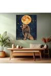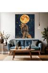 Kükreyen Aslan Tablosu Kanvas Tablo Ay ve Aslan Duvar Tablosu