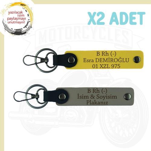 Miaju Kül Gri-Sarı, Motorsikletçilere, İsim Plaka ve B Rh (-) Kan Grubu Yazılı Kişiye Özel 2'li Anahtarlık