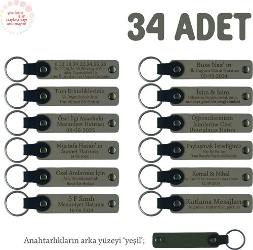 - Düğün, Nişan, Kına: Konuklarınıza unutulmaz bir hatıra bırakmak için üzerine etkinlik tarihi veya çiftin isimleri işlenmiş anahtarlıklar mükemmel bir seçenektir.