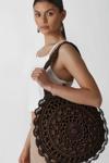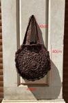 Külah Bohem Örgü Hasır Plaj Çantası Yuvarlak El Yapımı Yazlık Omuz Çantası
