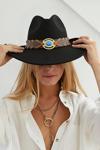 Külah Deri Şeritli Turkuaz Taşlı Siyah Bohem Kovboy Şapka