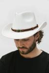 Külah Erkek Deri Detaylı Beyaz Nubuk Kovboy Şapkası