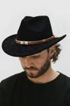 Külah Erkek Deri Detaylı Siyah Nubuk Kovboy Şapkası