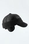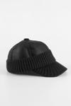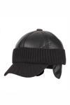 Külah Erkek Örgü Siper Detaylı Suni Deri Kulaklı Şapka - Siyah