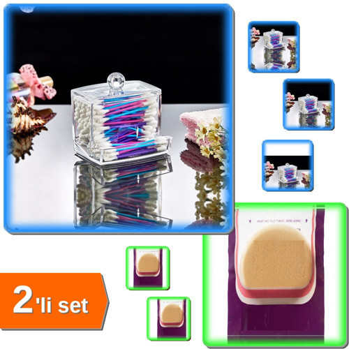 Hereveoyuncak Kulak Çubuğu Organizeri + Yuvarlak Mucize Makyaj Allık Pudra Krem Süngeri - 7 Cm - 2li Set W2J9X4