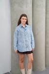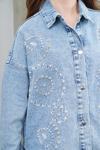 Kulina Kadın Desenli Taş İşlemeli Uzun Kot Gömlek Ceket