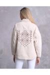 - Bej rengiyle zarif ve doğal bir görünüm sunan kadın nakış işlemeli bohem etnik desenli gabardin ceket.