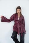 Kulina Moda Kuşaklı Deri Görünümlü Kimono Ceket ile Zahmetsiz Şıklık!Kimono tarzı bu ceket, lüks deri görünümü ve rahat kesimiyle her kombininizi bir üst seviyeye taşıyacak.