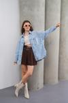 - Oversize kesimi ile rahat bir kullanım sunan uzun denim ceket, günlük şıklığınızı tamamlar.