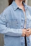 Kulina Vıp Serisi **Omuzları Kristal İşlemeli** Oversize Kot Shacket Lüks Zımba Detaylı Uzun Denim Ceket