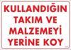 Kullandığın Takım ve Malzemeyi Yerine Koy Uyarı Levhası 25x35 KOD:233