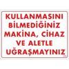 Kullanmayı Bilmediğiniz Makina Uyarı Levhası 25x35 KOD:208