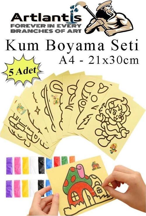 Artlantis Kum Boyama Seti 5 Adet 20x30 cm A4 Boyutunda Büyük Boy Kaliteli Kum Boyama Çalışması Tuz Boyama Etkinlik