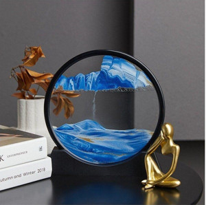 Adm Store Dekoratif Yuvarlak 3 D Hareketli Mavi Kum Saati Şeklinde Kum Tablosu 7 İnç Orta Boy Yuvarlak Kum Tab - Image 1