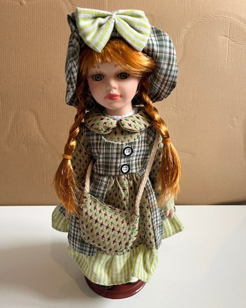Kumaş Kıyafetli Porselen Bebek 30 Cm Özel Üretim Yeşil Puantiyeli, ince detaylarla şekillendirilmiş yüz hatları ve özenle hazırlanmış kumaş kıyafetleri sayesinde adeta bir sanat eseri görünümü sunar. 30 cm ideal boyutu ile vitrin, raf ve dekoratif alanlarda kusursuz bir uyum sağlar. Yeşil puantiyeli elbisesi nostaljik bir tarz sunarken bulunduğu ortama zarif bir hava katar. Dayanıklı porselen yapısı uzun yıllar formunu koruyarak koleksiyon değeri yüksek bir ürün olmasını sağlar.