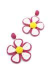 Kumaş Papatya Küpe - Fuşya