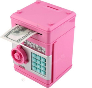 Mobgift Şifreli Otomatik Kağıt Para Alan Atm Kasa Kumbara - Pembe - Image 1