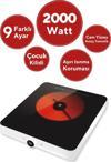 Kumtel Tekli Elektrikli Vitroseramik Ocak HCA-2001 2000 Watt Yüksek Güç Gerilim: 220–240V, 50–60 Hz Kullanıcı dostu kontrol paneli hem düğme hem de dokunmatik seçenekleri ile donatılmıştır. Dijital LED Ekran: Pişirme sürecini ve sıcaklığı kolayca takip etmenizi sağlayan şık bir LED ekranı bulunur. 9 Kademe Güç Ayarı Kolay Temizlik için Cam Yüzey Cihazın güvenliğini sağlamak aşırı ısınma koruması bulunmaktadır Güvenli kullanım için çocuk kilidi fonksiyonu Hafif ve Taşınabilir Her Tip Tencere ve Tavaya Uygun Taşma Koruması: Pişirme sırasında taşma durumlarında cihazın zarar görmesini engelleyen taşma koruma sistemi bulunmaktadır. Termal Sigorta: Aşırı ısınma durumunda cihazı koruyan termal sigorta mevcuttur. Ürün Boyutları: 280x336x63 mm
