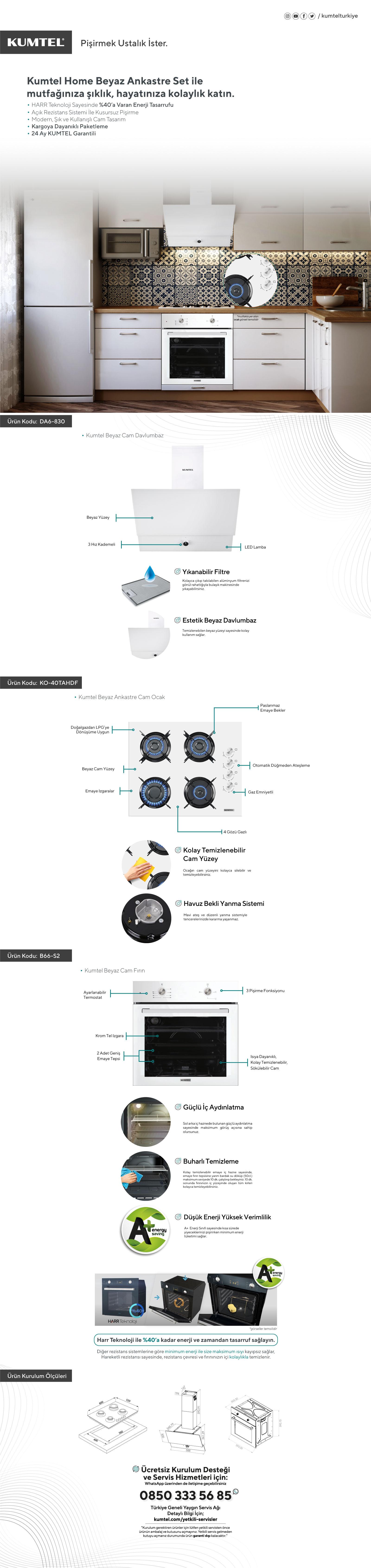 Kumtel Beyaz Ankastre Davlumbaz (DA6-830)