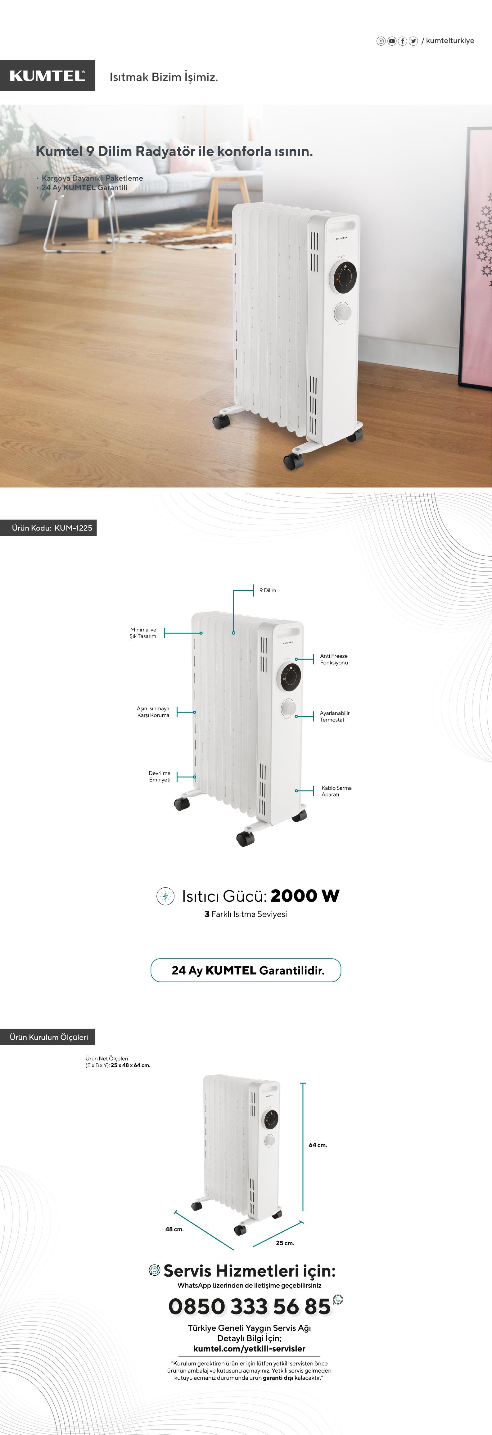 Kumtel KUM-1225 9 Dilimli 2000 W Yağlı Radyatör