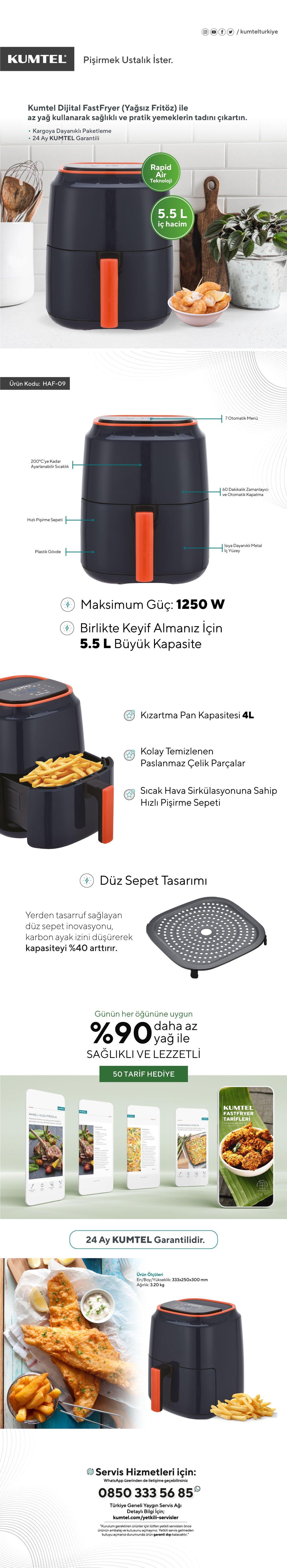 Kumtel Lacivert Digital Fastfryer (Yağsız Fritöz Airfryer) Güç: 1250W