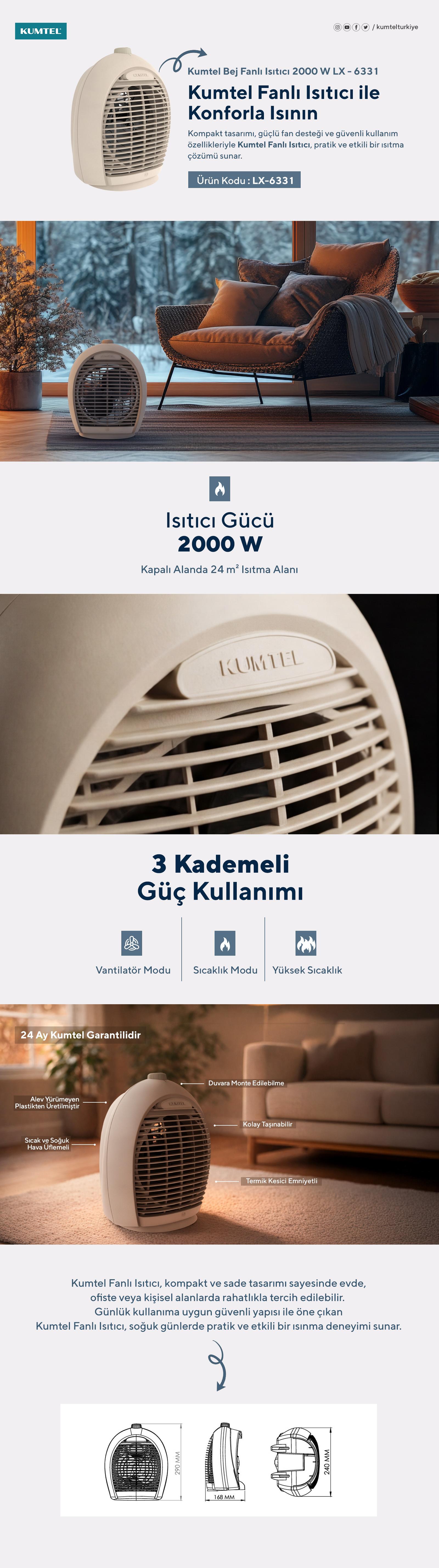 Kumtel Fanlı Isıtıcı Bej 2000 W Lx-6331