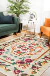Halinet Kungur Bej Çiçekli Etnik Modern Desenli Pamuk Makinada Yıkanabilir Hav Toz Vermez Leke Tutmayan Kaymaz Taban Dijital Makine Baskı Salon Yolluk Mutfak Halı